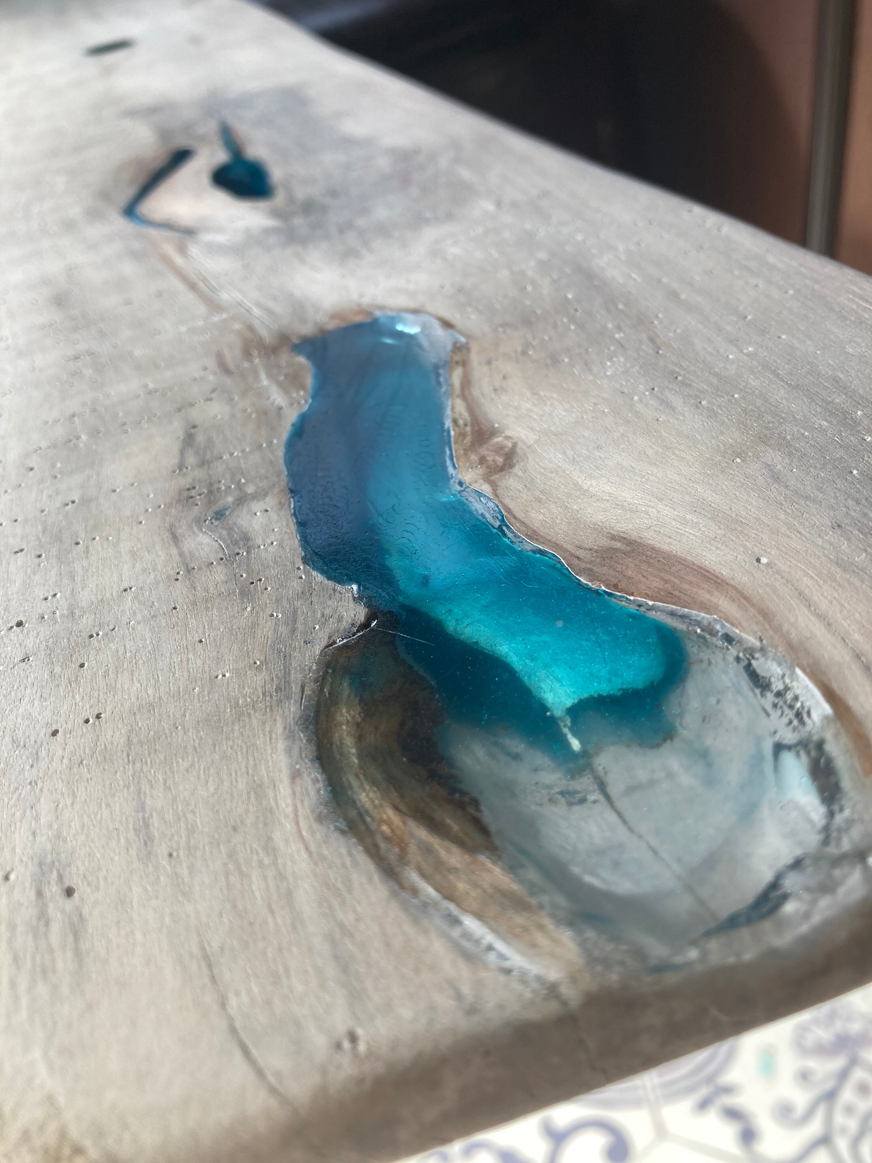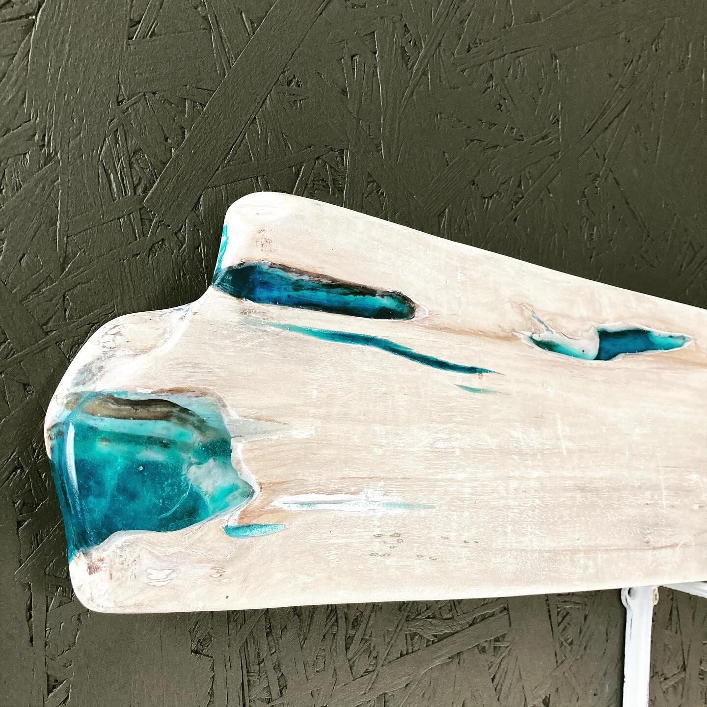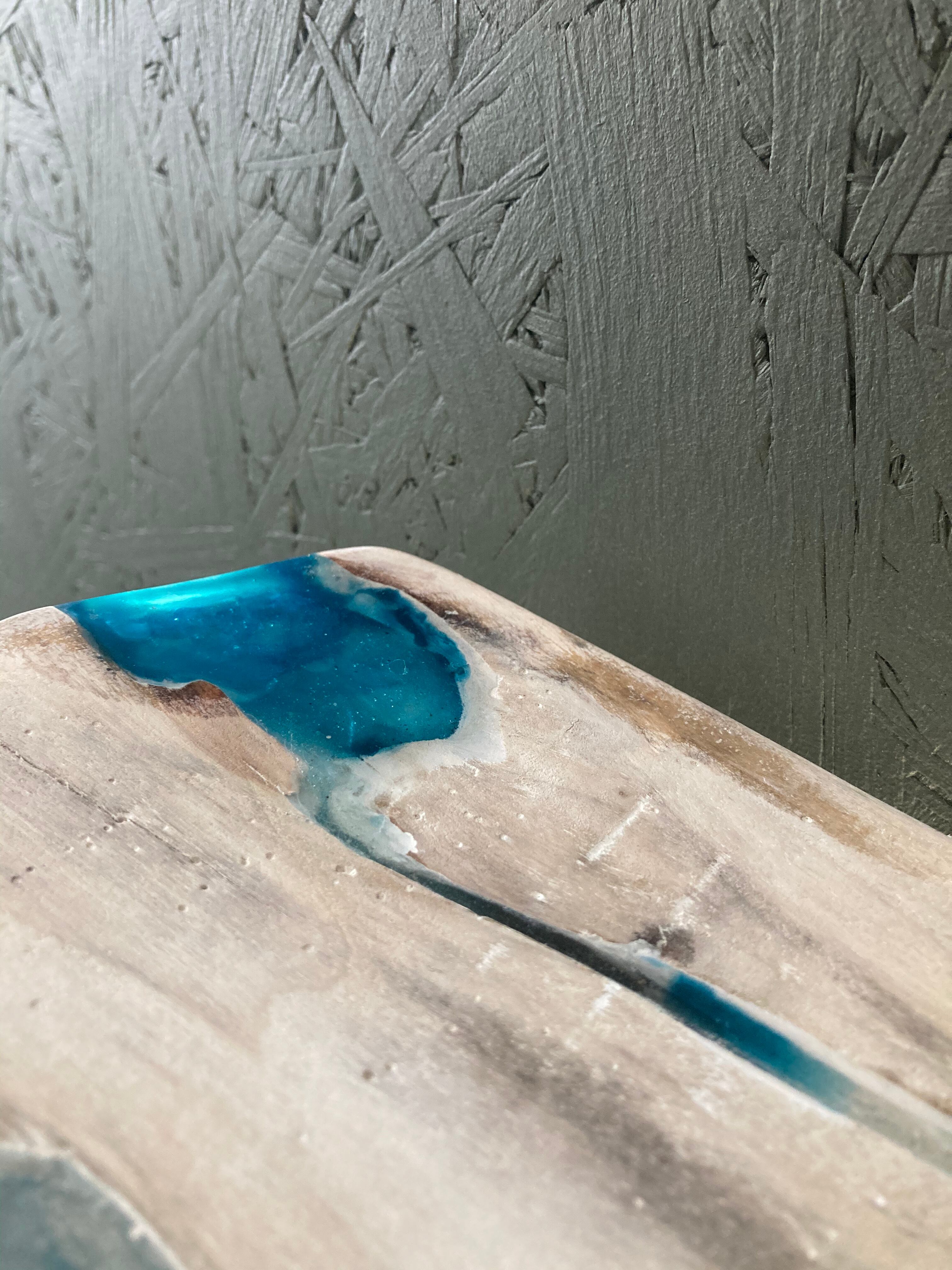 流木の節やひび隙間にレジンを流し込んで仕上げました。