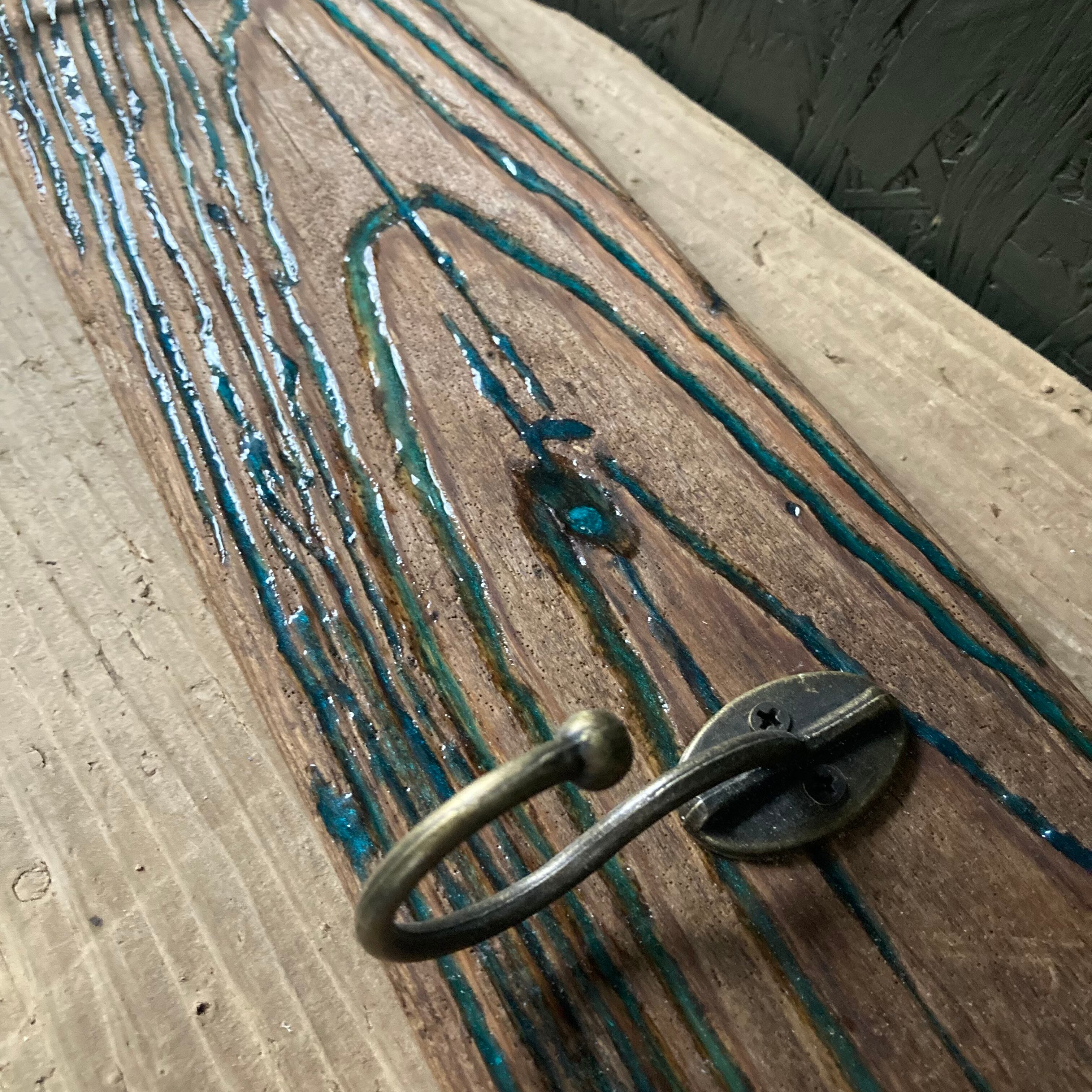 【Drift Wood】流木×レジン 3連ウォールフックハンガーラック