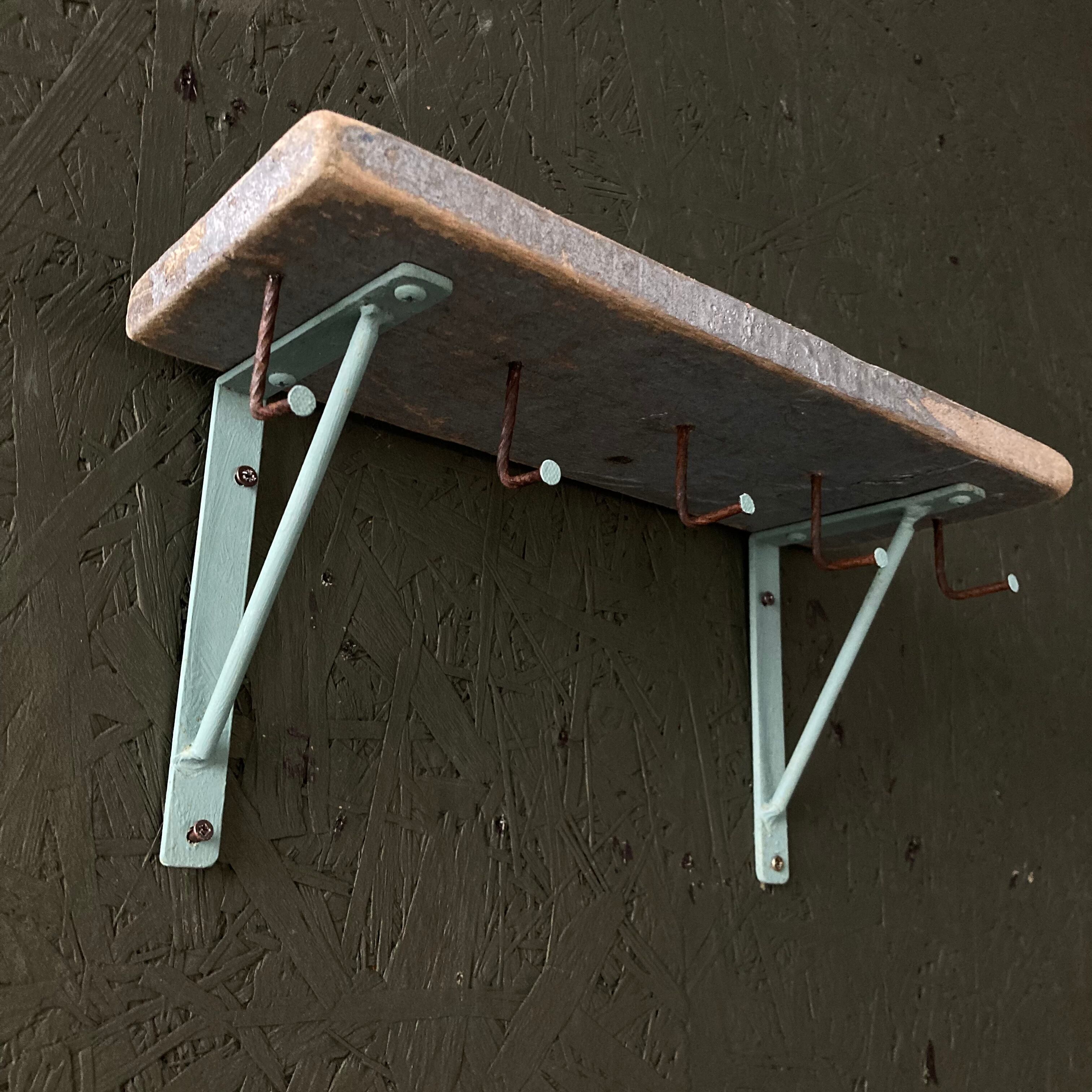いい感じに塗装が剥がれた流木の板を、錆びた釘をフックにして、ウォールラックにアップサイクルしました。