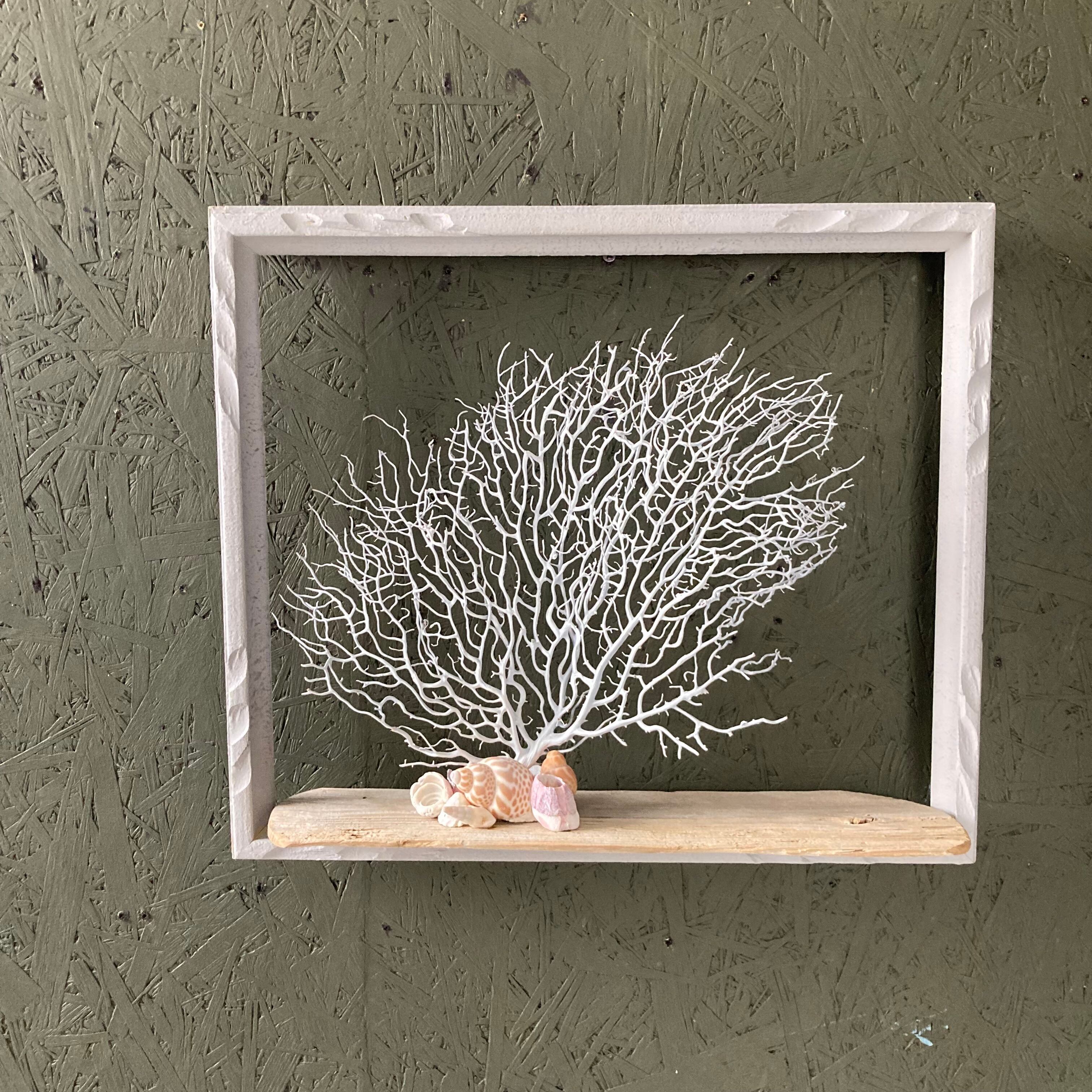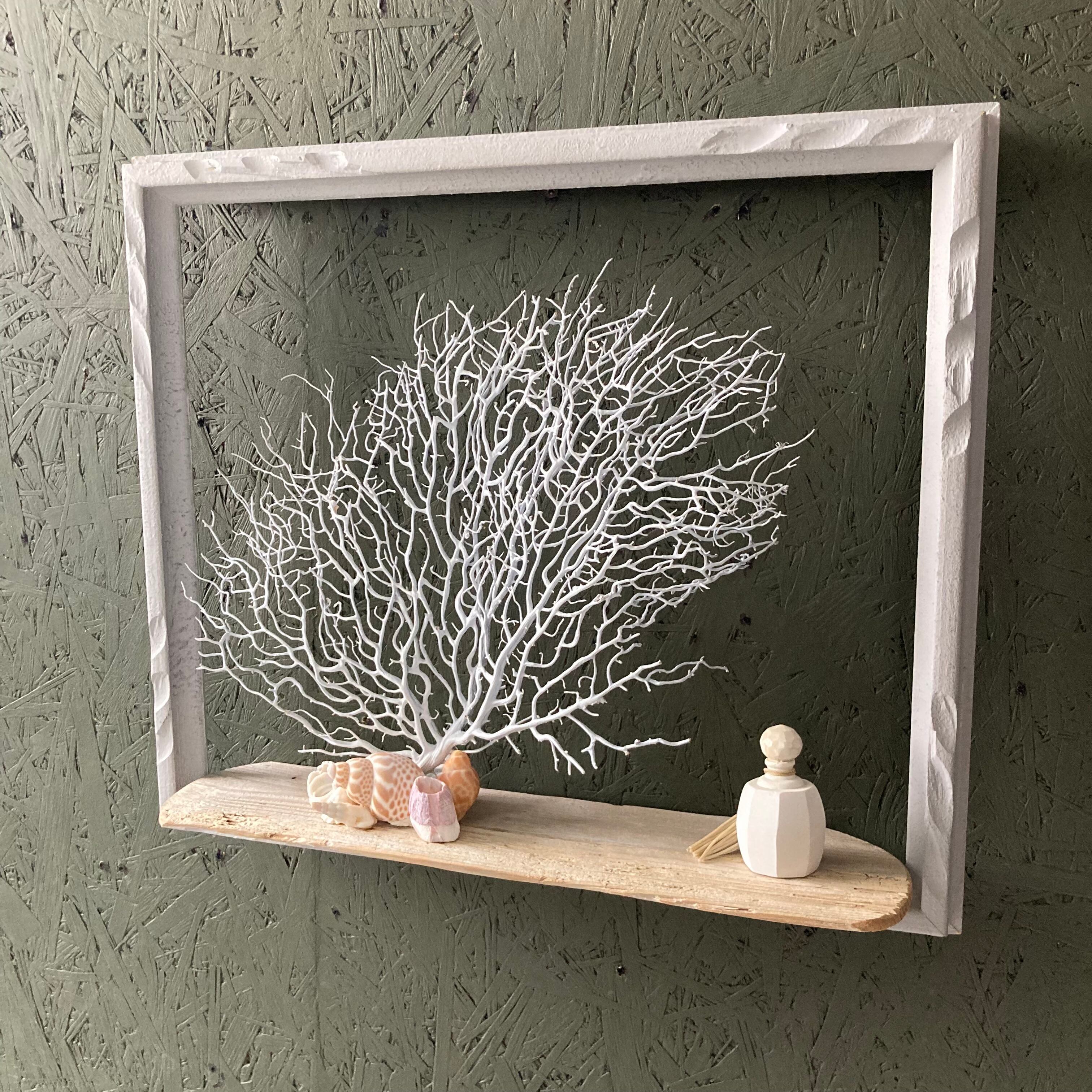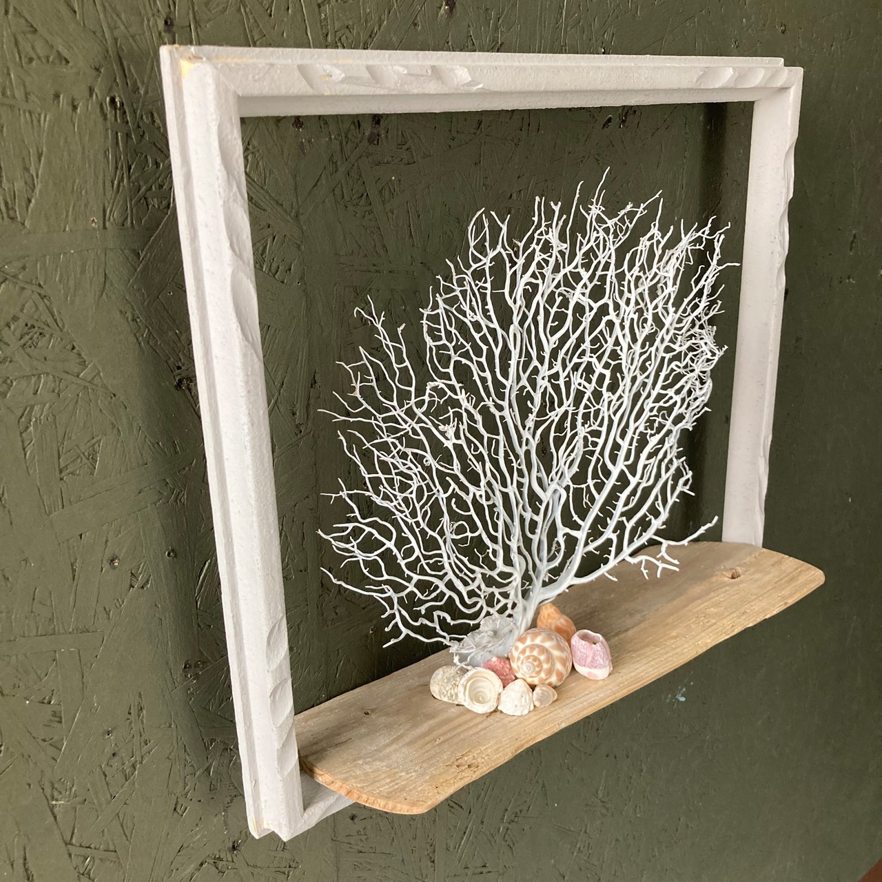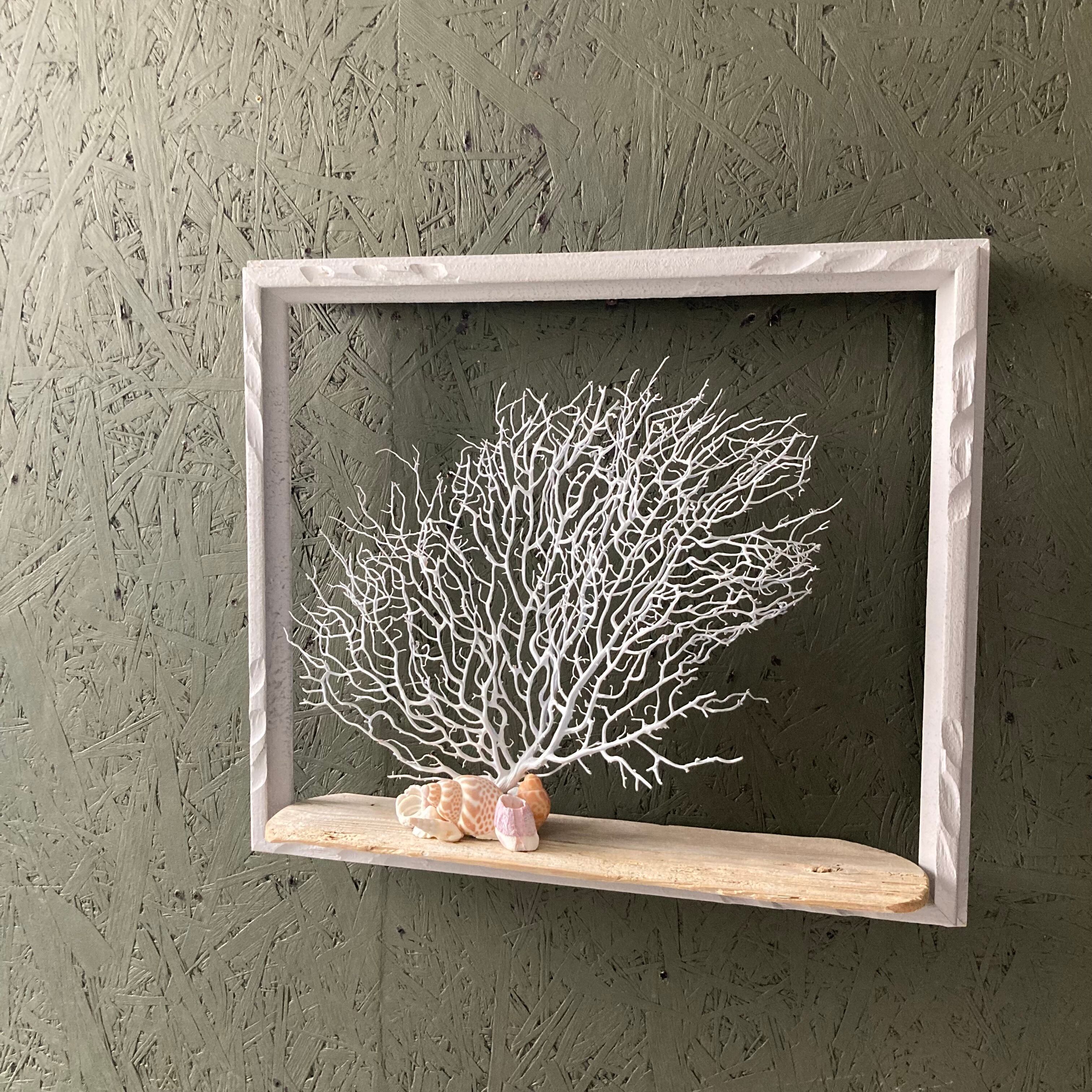 ウミウチワと貝殻のフレームオブジェ ウォールフレーム