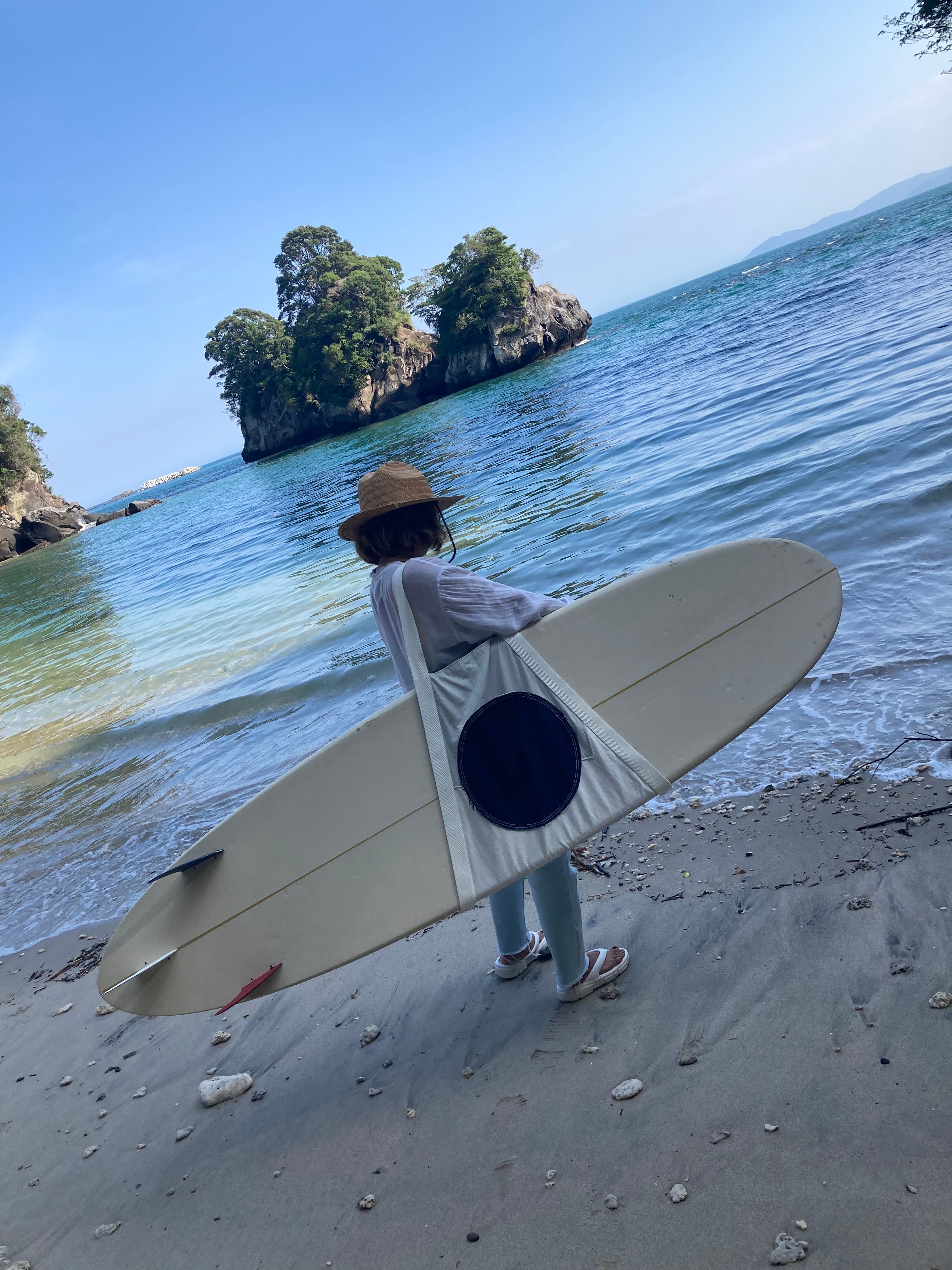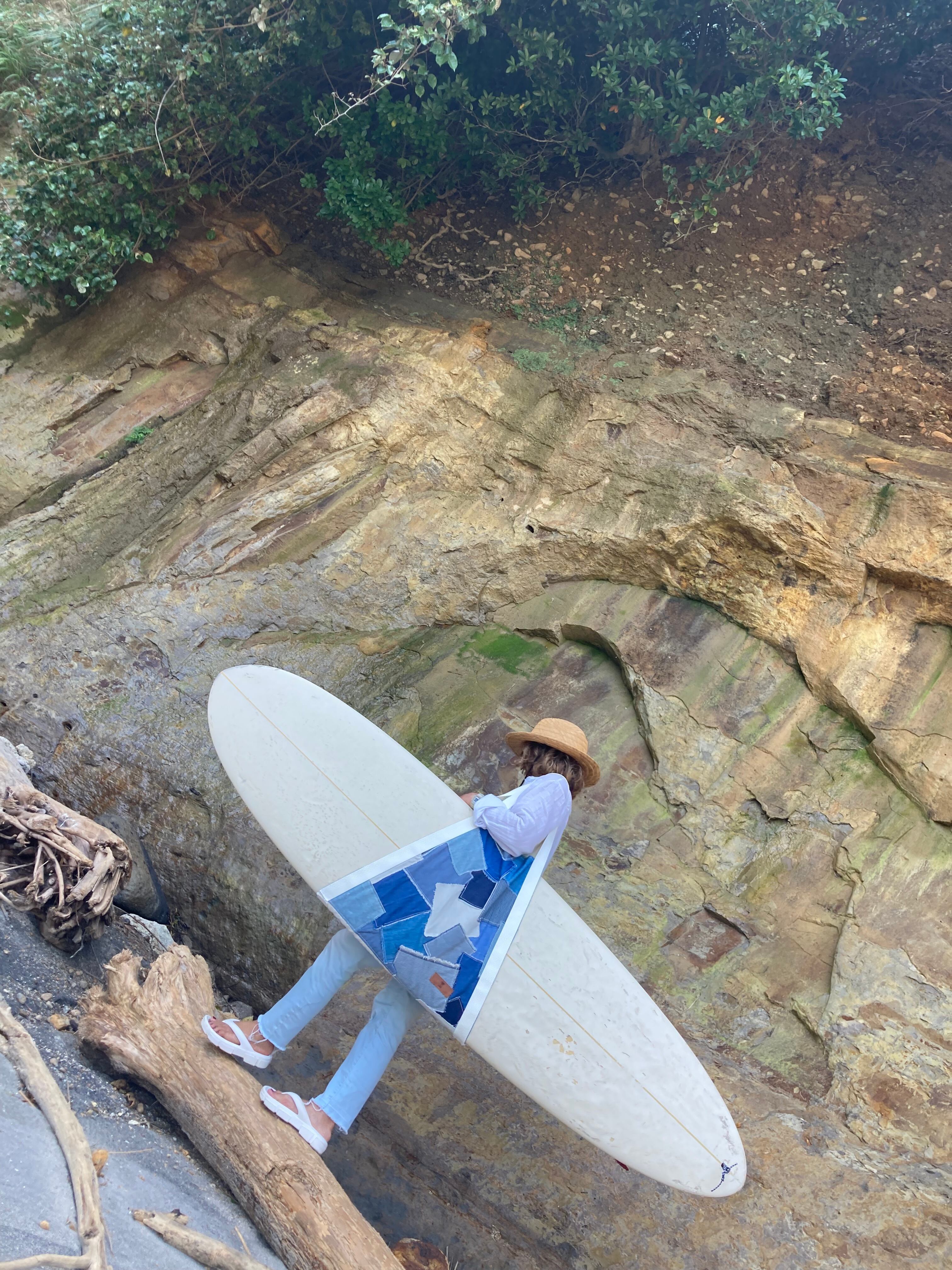 サーフボードキャリーバッグ パッチワークデニム(&indigo) ロングボード ミッドレングス 重いボードを運ぶのに便利アイテム アップサイクル品